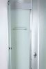 Модель представляет собой правосторонний или левосторонний закрытый душевой бокс размером 85 (90) х 120 см. Основная особенность - это наличие одной стеклянной двери с металлической ручкой. Благодаря чему вход в кабину удалось расположить в более удобном месте, чем в изделиях с двумя дверьми. Кроме того в конструкции используется всего четыре бесшумно скользящих ролика.